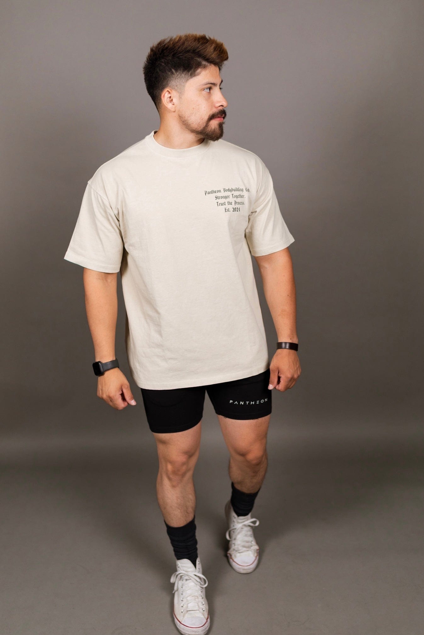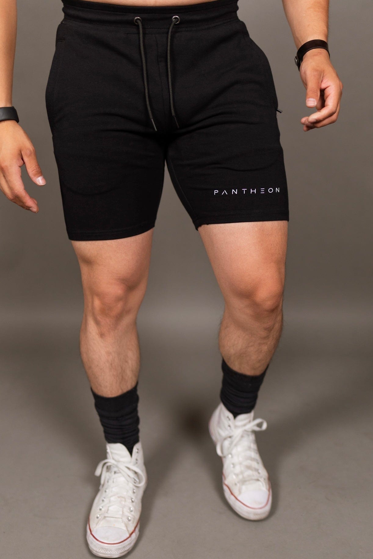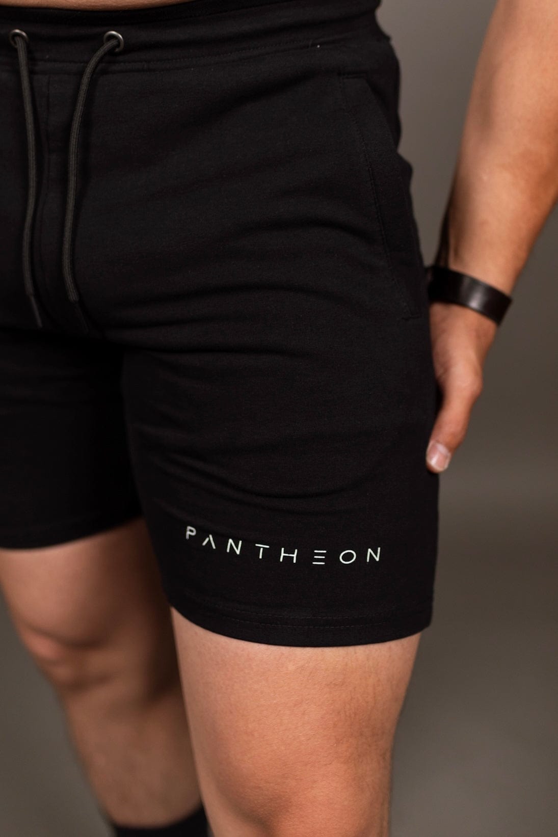 - Pantheon Symbol Logo on back pocket, Pantheon wordmark logo on side of leg